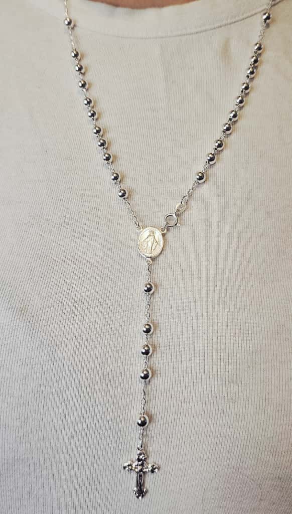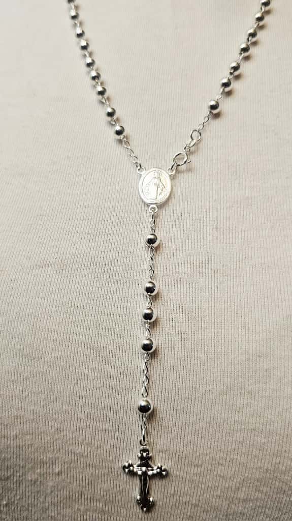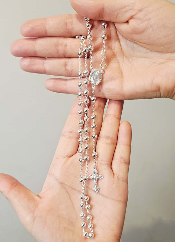 Rosario Elegante de plata esterlina con el centro de la virgen Maria y un crucifijo hermoso.